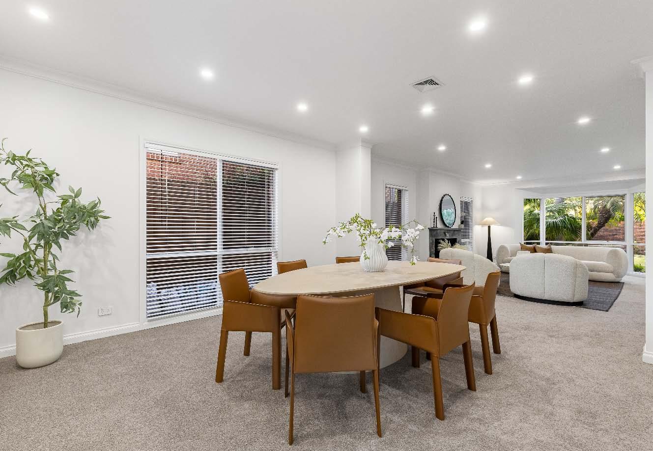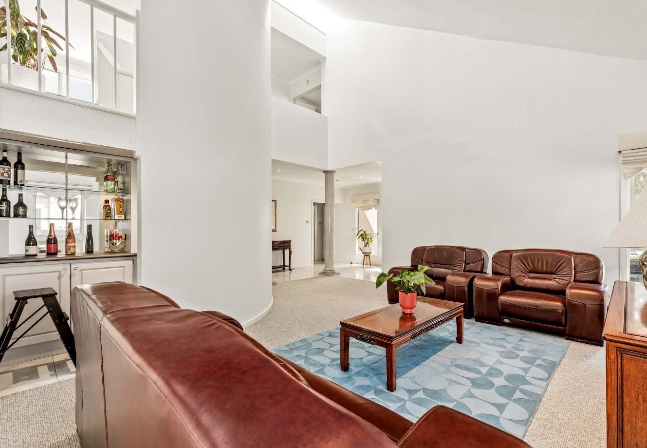 are two bedrooms & two bathrooms. Upstairs, a second living & dining opens onto a balcony terrace. This space is further complemented by a well-appointed kitchen with a dishwasher & an abundance of storage. The accommodation upstairs is substantial, featuring a main bedroom with walk-in robe & ensuite, five additional bedrooms/optional study & central bathroom & separate toilet. Other features include ducted heating/refrigerated cooling upstairs, two oversized single garages & plenty of additional off-street parking as well as a convenient circular driveway. *Approximate Title Dimensions.