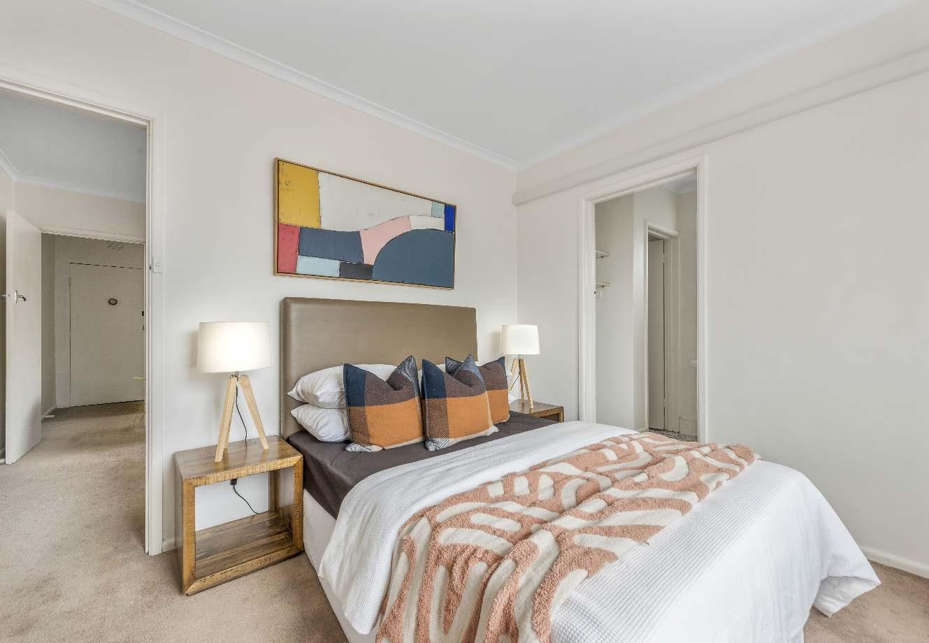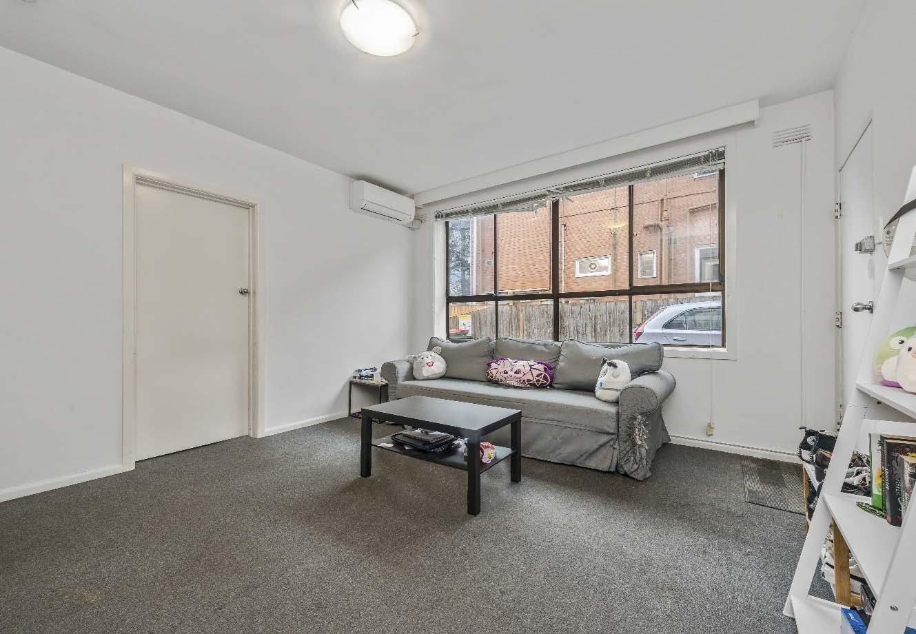 room kept comfortable by split system heating/ cooling, central bathroom with shower over bath & laundry facilities & two good-sized bedrooms with built-in robes. Each apartment also enjoys off street parking for one car. Don’t miss this unique opportunity to make your mark in this prime lifestyle location, moments from vibrant cafes, transport, parklands & shopping as well as an easy commute to St Kilda Road, the CBD & the beach!