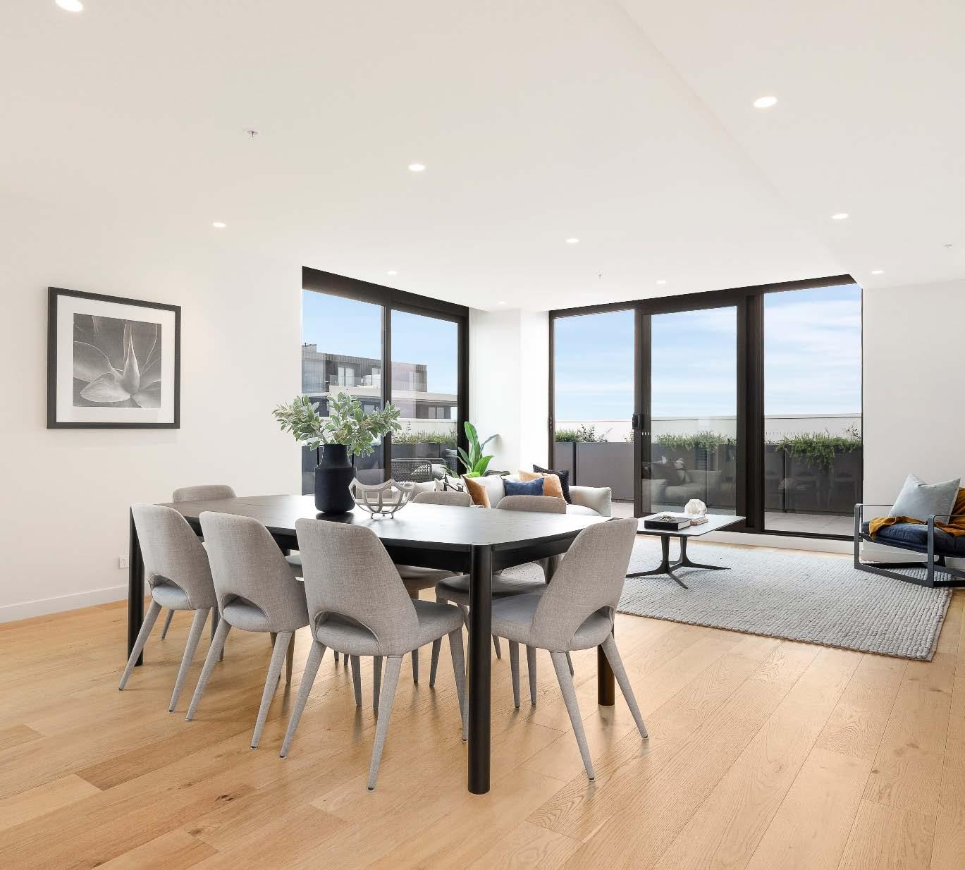 Part of a striking boutique collection with a distinct urban edge, this as-new architectdesigned residence is bold, contemporary & immediately impressive. Delivering high-end living without compromise, the multi-level design in a prized St Kilda East location perfectly caters to a modern family lifestyle. An expansive open plan living & dining creates an inviting first impression. Bathed in natural light, this space seamlessly extends to an alfresco deck & enclosed front garden with private street entry. The gourmet kitchen forms a true centrepiece, showcasing premium appliances, stone benchtops