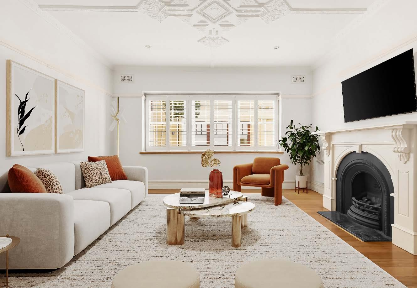 Securely tucked away amidst lush, beautifully maintained garden surrounds, this charming period block “Curzon” delivers a peaceful sanctuary in a highly sought after lifestyle location. One of just eleven residences, this solidly built & stylishly updated first floor Art Deco apartment is impeccably presented & ready for immediate enjoyment. With a tangible warmth & captivating character it presents a lovely blend of original features that seamlessly combine with the modern comforts of today. A generously proportioned northerly orientated living & dining room is enhanced by etched glass doors, ornate