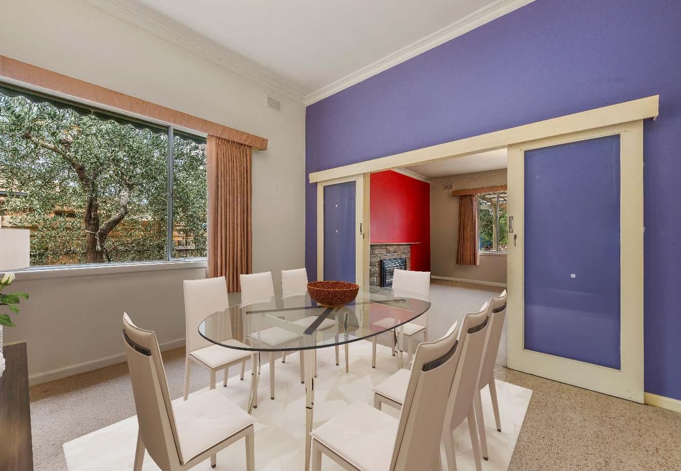 casual meals area served by a stylishly updated kitchen with stainless steel appliances & plenty of storage & bench space. Sliding doors open out to a large full width courtyard with landscaped surrounds - an inviting spot for alfresco relaxing & entertaining. The accommodation includes a generous main bedroom with a picturesque bay window enjoying leafy outlooks, complete with walk-in robe & modern ensuite, while two additional bedrooms with built-in robes share a central bathroom with a separate toilet. Additional features include ducted heating/cooling, a separate laundry, storage shed & single garage.