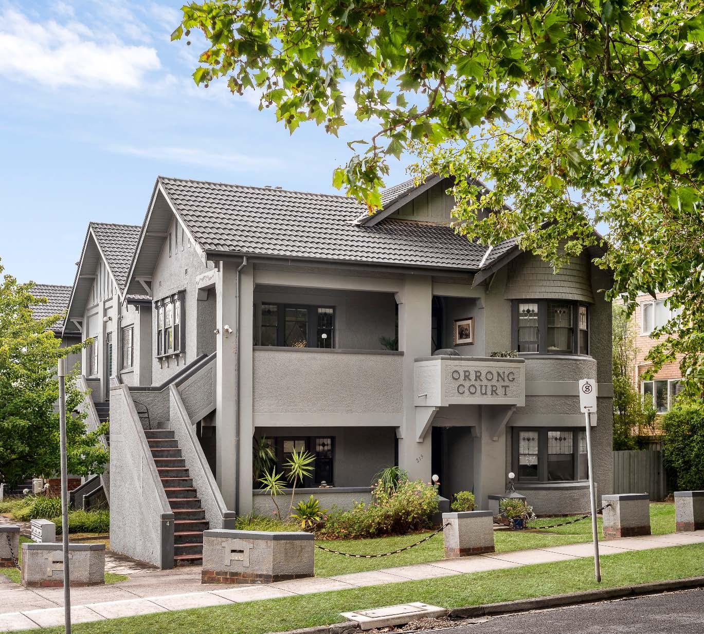 An extraordinary opportunity awaits to reap endless rewards from “Orrong Court” - a magnificent 1920s Art Deco boutique block comprising six generously proportioned residences, to be sold as one. Commanding a prominent corner position on a 911m2* allotment in a leafy St Kilda East location, this solid brick building includes six currently tenanted apartments - four one-bedroom residences & two two-bedroom residences, all in varying condition. Rich in the grace & character of its Art Deco heritage, the building is adorned with magnificent original features including glistening leadlight