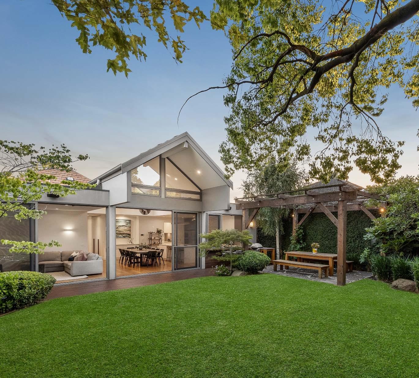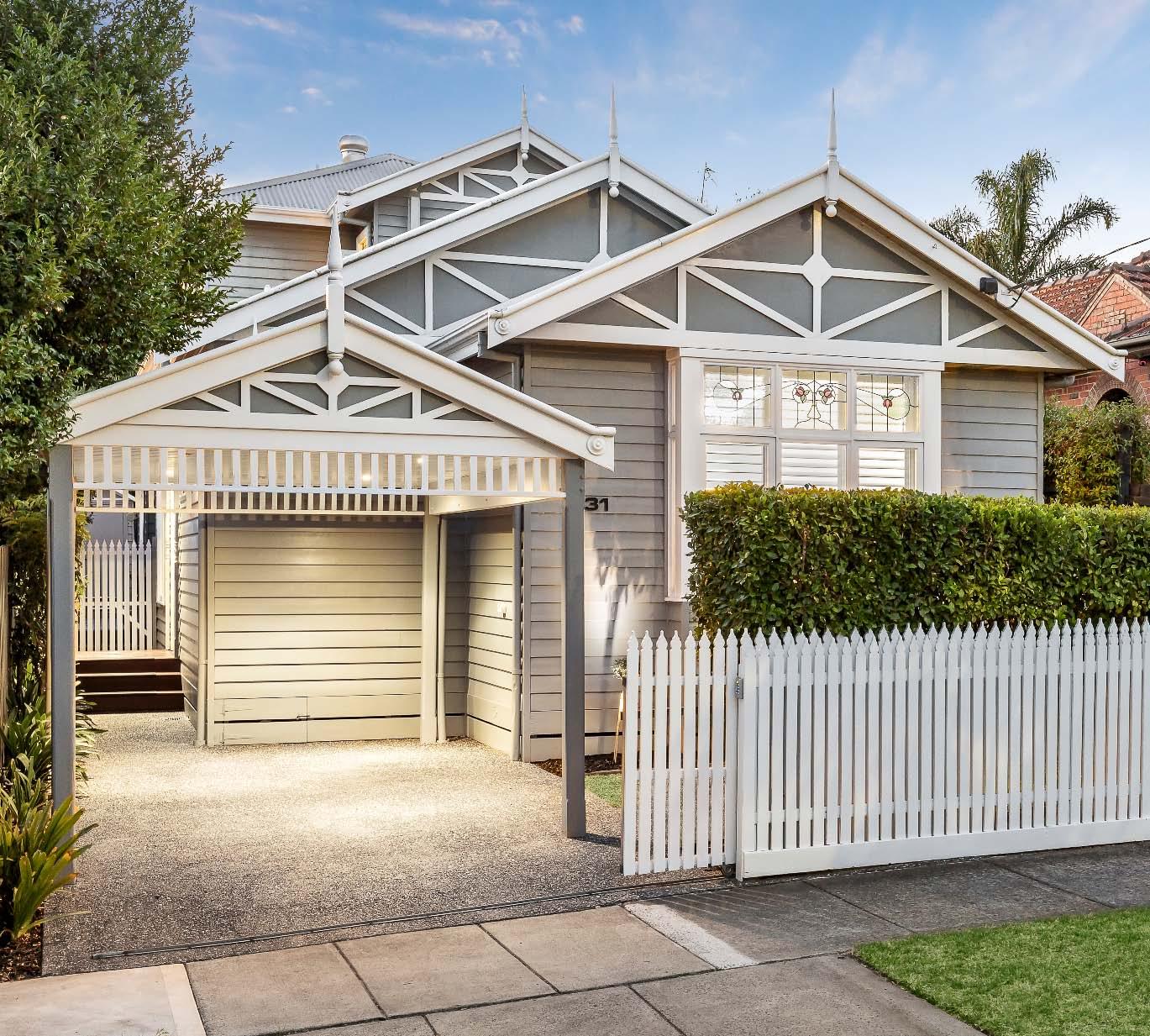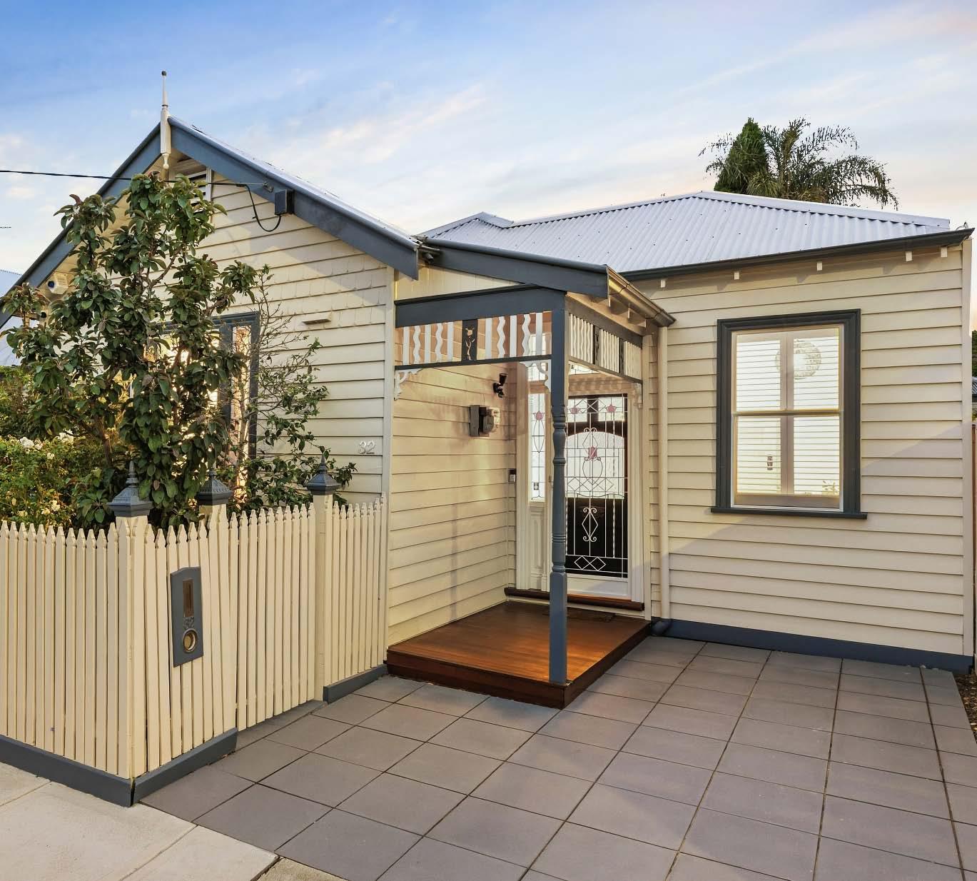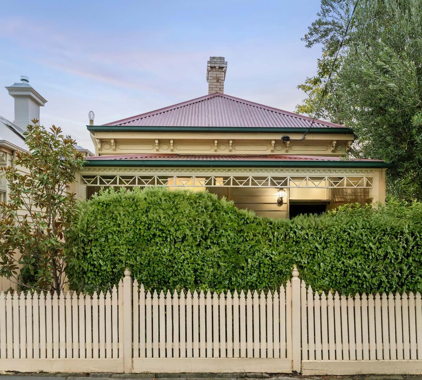 A charming single-fronted façade privately screened by established magnolia trees introduces this cleverly renovated residence, where thoughtfully reimagined interiors maximise space & light to deliver a stylish haven on the cusp of Balaclava Village. Soaring ceilings & polished floorboards top-&-tail the refreshed interior, revealing a sweeping entrance hallway anchoring three inviting bedrooms (two with built-in robes).