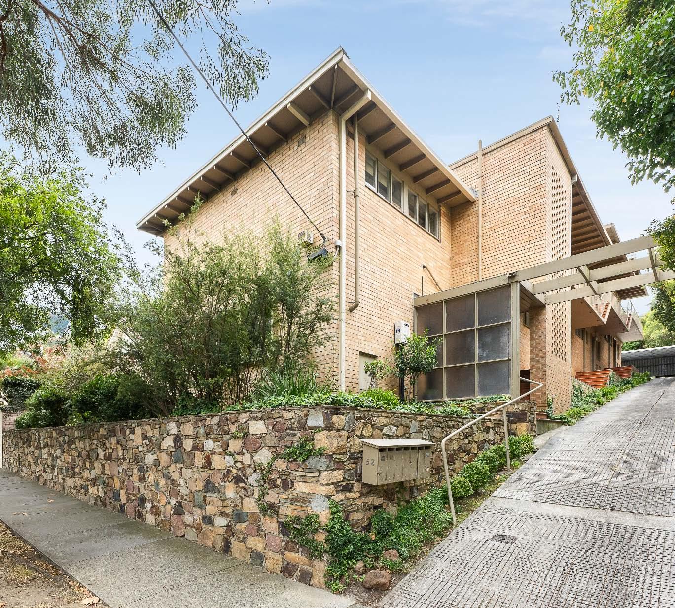 Ideally positioned in an exclusive tree-lined setting, within an elevated & iconic Mid-Century block of just seven, this solid brick first floor apartment presents a rare opportunity to secure a coveted Toorak address. An ideal entry point or investment, it’s perfectly comfortable to live in or rent out as is, while also offers exciting scope for a stylish contemporary renovation. Polished timber floors flow from the entrance hallway through to a north facing living & dining room with an open fireplace. Bathed in natural light, this inviting space opens to a sun-drenched balcony terrace capturing leafy outlooks that extend as far as