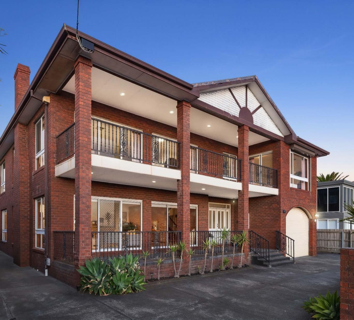 Start & finish every day with Port Phillip Bay as your backdrop. Set on a substantial 696m2* allotment & surrounded by some of the area’s most luxurious homes, this multi-generational family home, while comfortable to live in as is, also presents exciting scope for a transformation or the opportunity to explore future redevelopment options (STCA). On entry, the ground level delivers a living room with timber floors, elegant hallway arches & an open fireplace. Two sets of sliding doors open to an elevated front patio, while an adjoining dining with a kitchenette enjoys access to an enclosed rear garden. Also on this level