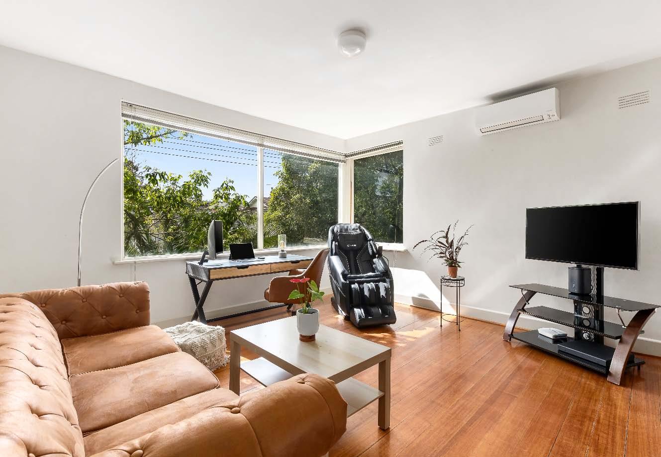 functional kitchen with laundry facilities & good storage as well as two good sized bedrooms with built-in robes & balcony access & a sparkling central bathroom with shower & bath complete the accommodation. This ideal first starter or investment also features split system heating/ cooling. Conveniently located just a stones throw from Alma Village shops & Dandenong Road trams with easy access to Chapel Street & the CBDoffering a hassle free lifestyle of convenience surrounded by excellent lifestyle amenities.