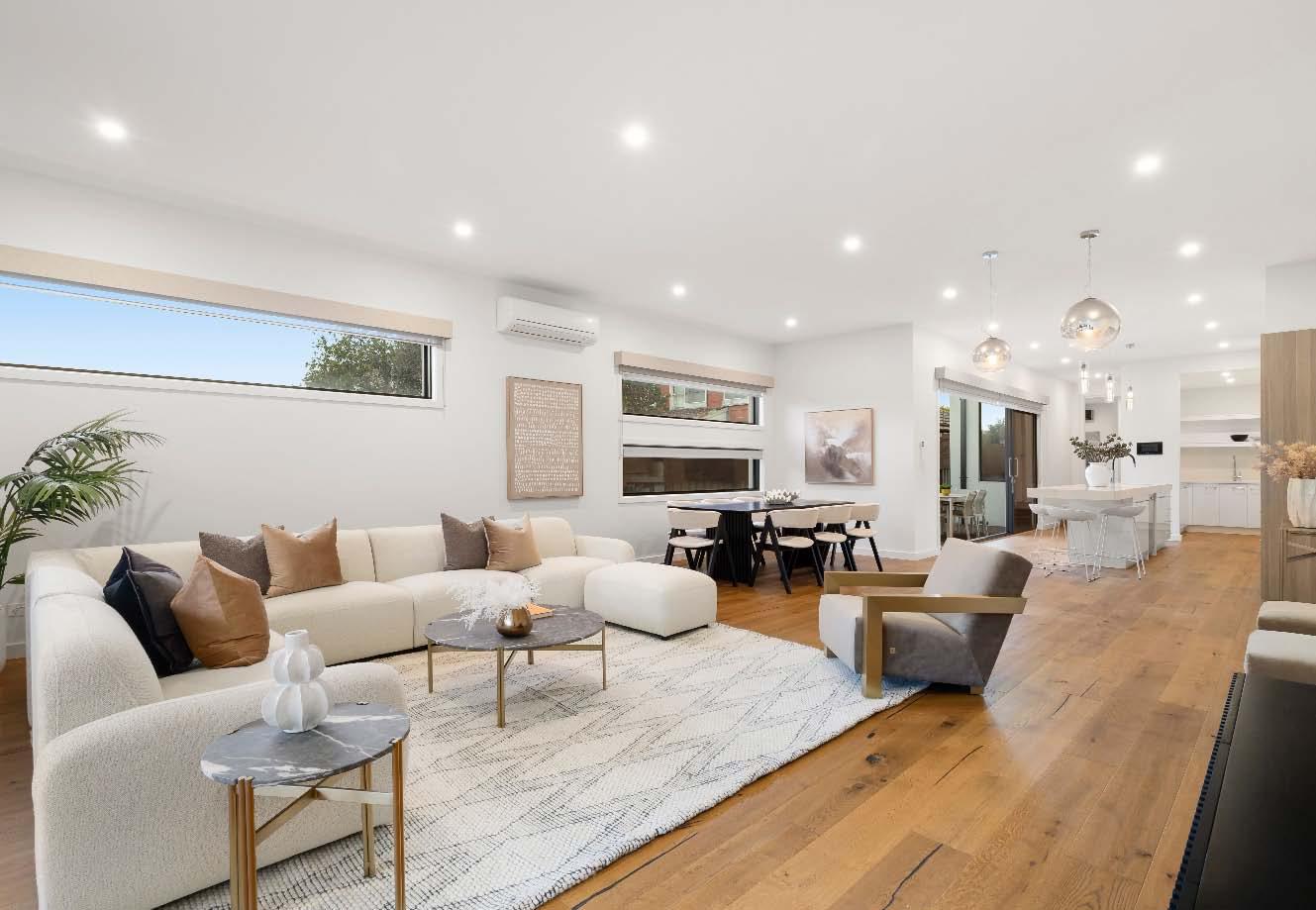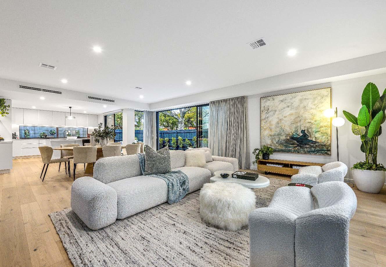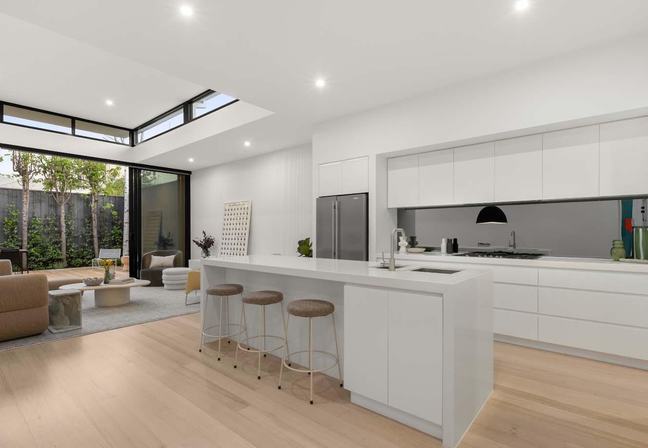 Defined by its wonderful sense of light, generous proportions & a flawless contemporary renovation, this superb street fronted townhouse has been stylishly transformed from top-to-toe. Showcasing quality finishes, timeless design & seamless indoor-outdoor appeal, it offers an ideal blend of luxury & low maintenance living. Engineered oak flooring flows from the entry into a wonderfully expansive living & dining zone. Two sets of doors open to a vast, full-width alfresco deck & wrap around garden, creating a fabulous indooroutdoor flow. This light filled heart of the home is complemented by a gourmet stone kitchen