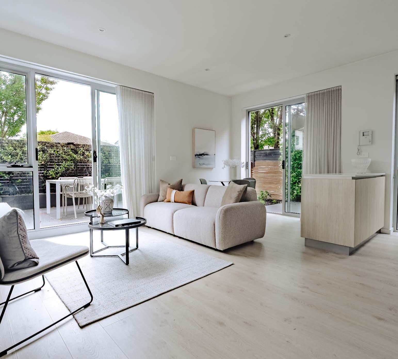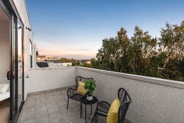dishwasher), glass splashbacks, good storage & a convenient powder room completes the level. The top floor is dedicated to two generously sized bedrooms with built-in robes, each complemented by its own modern ensuite. Additional features include split system heating/cooling, secure video intercom entry, a single auto garage with laundry facilities & gated driveway access. Ideally positioned in an unbeatable lifestyle location –close to vibrant Carlisle Street’s dining & shopping precinct, Alma Park, Alma Village cafés, Chapel Street, schools & a choice of transport options.