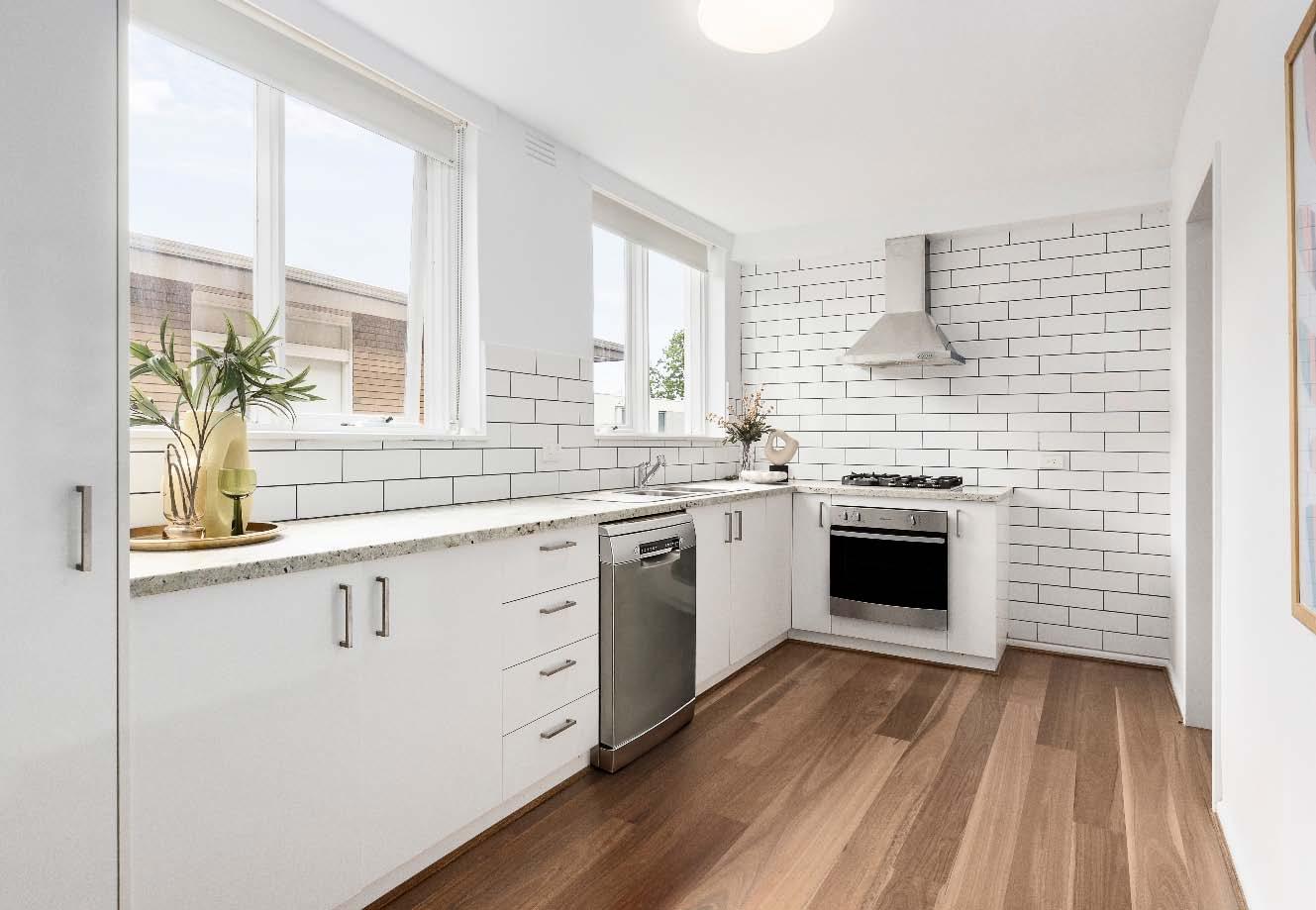 Brimming with appeal, this solid & spacious threebedroom ground floor apartment blends generous light filled proportions with modern comfort in a vibrant lifestyle location. Ideally positioned, it would suit first home buyers tapping into the market or savvy investors looking to add to your portfolio. A long entrance hallway welcomes you & delivers an expansive living & adjoining dining room. The hallway culminates in a separate well appointed kitchen with stainless steel appliances (including dishwasher), breakfast bar & ample storage. While three good sized bedrooms (two with built-in robes) share a sparkling central