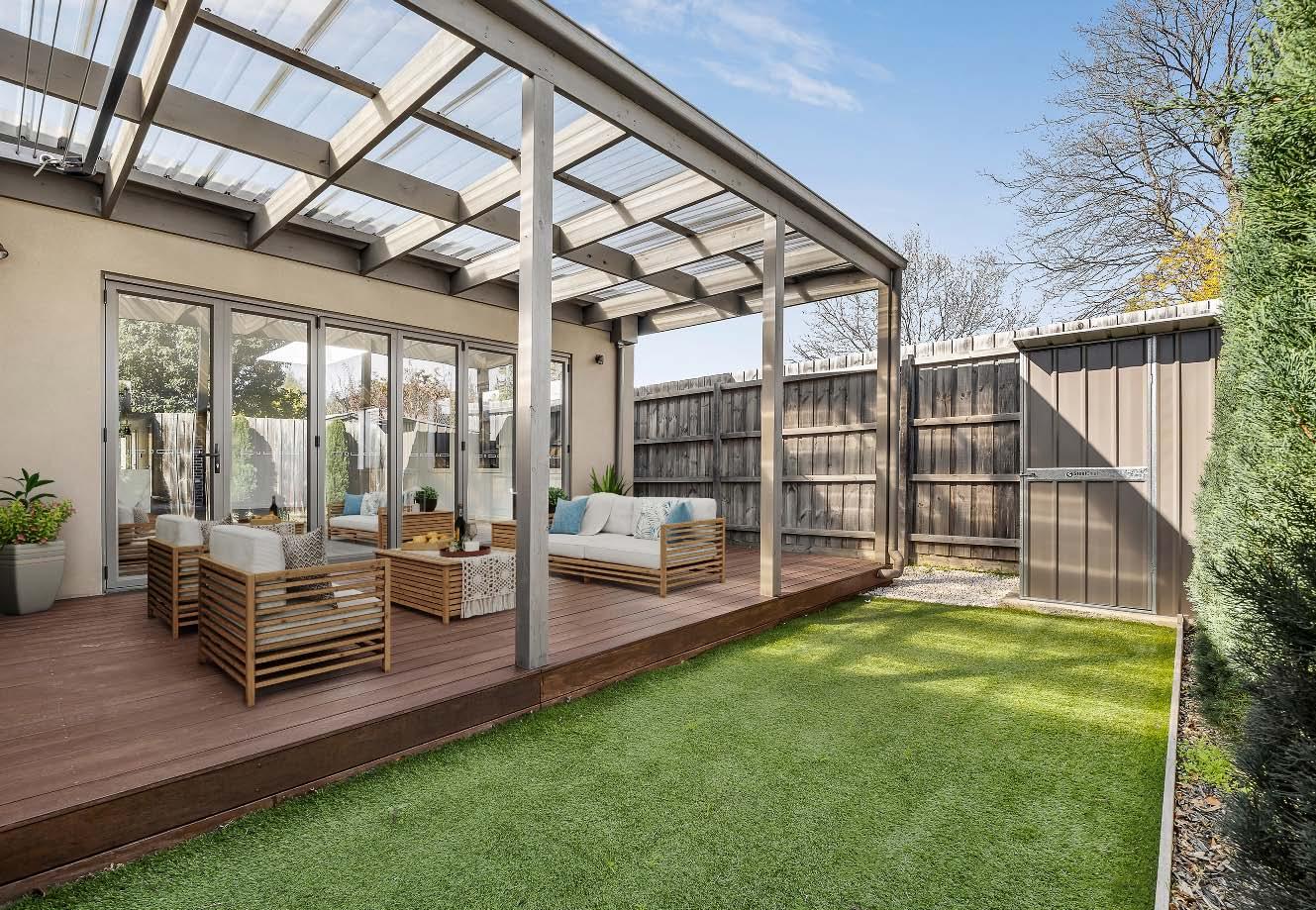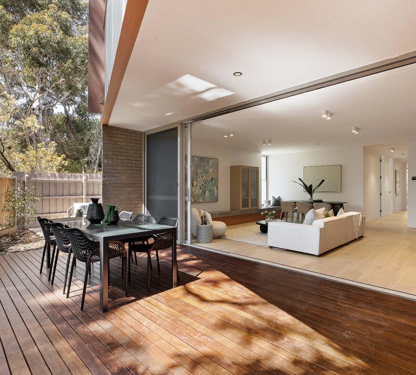 dish drawer dishwasher & plenty of storage & bench space. The kitchen extends outdoors to an expansive elevated timber deck & a sundrenched north facing garden, perfect for alfresco enjoyment. Two large bedrooms with built-in robes & garden outlooks share a sparkling central bathroom with bath, shower & separate toilet. Other features include a separate newly renovated laundry, powder room, ducted heating & a single garage Brilliantly located for lifestyle convenience, it’s just moments from Carlisle Street’s vibrant cafes, bars & shopping, Balaclava Station, trams & parklands.