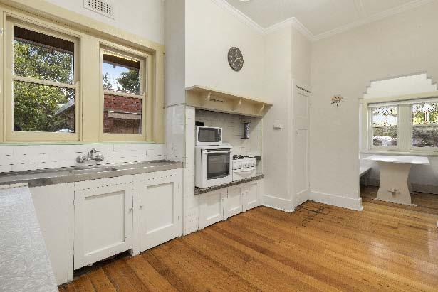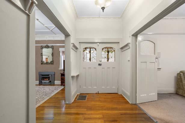 engineered floorboards, the interior is introduced by an open-plan living & dining lined with pictureframe sash windows & fireplace, complimented by a stone-topped kitchen with dishwasher. A remarkably spacious primary bedroom enjoys a private ensuite, while the second robed bedroom is serviced by a contemporary central bathroom with European laundry & an adjacent annex bedroom features an ensuite, built-in robes, sink & split system for a private guest retreat or office space. A second entry point via the kitchen, ducted climate control & off-street parking complete this time-honoured residence.