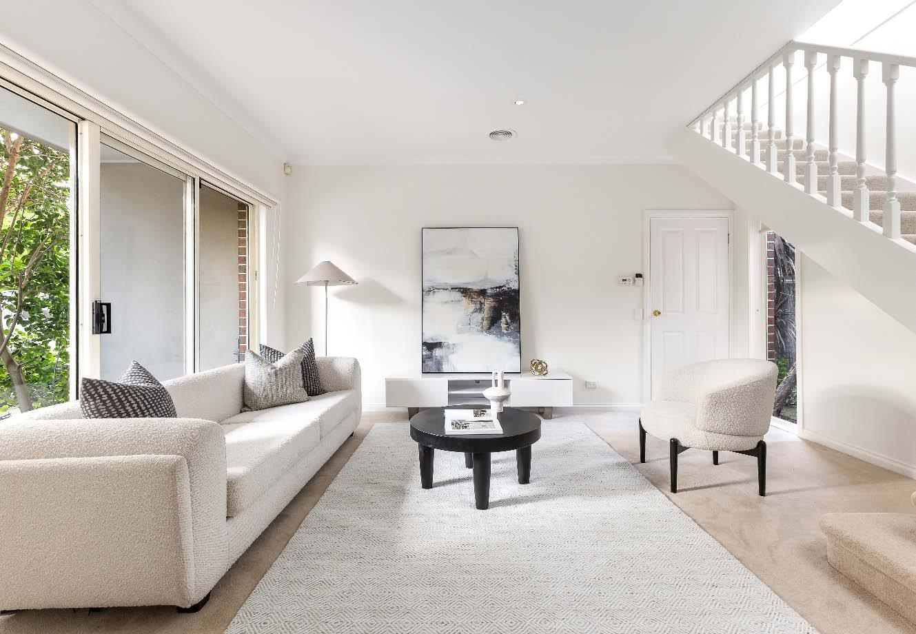 with low maintenance landscaped surrounds & a large Kalamata olive tree – the ideal backdrop for effortless relaxing & entertaining. Upstairs delivers a good sized main bedroom with built-in robes, private balcony & dual access semi ensuite with shower over bath, two additional bedrooms & a large sun-drenched central balcony. Other features include a heating unit in the living room, panel heater in the main bedroom, intercom entry, powder room & a single carport behind auto front gates. Ideally located just moments from Alma Village cafes & shops, Dandenong Road trams & within easy reach of Chapel Street.