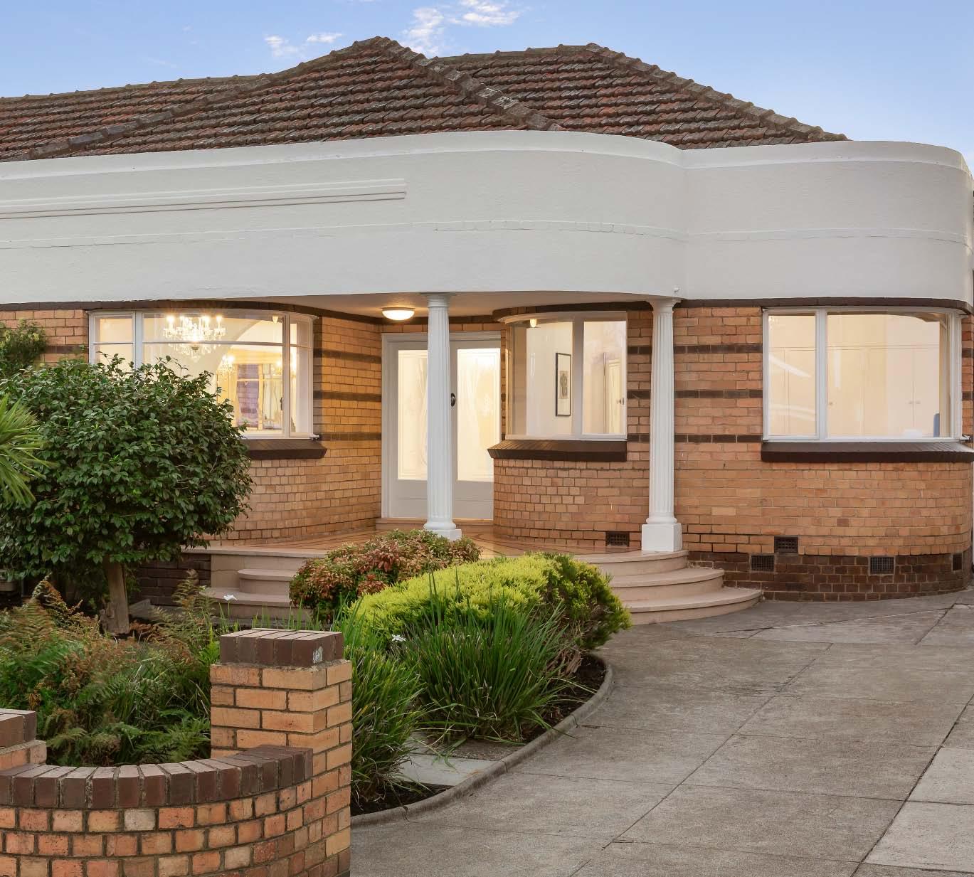 Perched on an elevated block of 645m2* this beloved four-bedroom solid brick family home delivers an alluring combination of current-day liveability & an exciting opportunity for future refurbishment & enhancement. Beyond a sizeable front garden & picturesque Deco façade, the spacious interior welcomes you with a wide entrance, front living room & adjoining formal dining, all crowned by original moulded ceilings. A separate kitchen & meals area is equipped for current use with a freestanding gas cooktop, dishwasher & walk-in pantry. A second family living room with fireplace orientated to capture