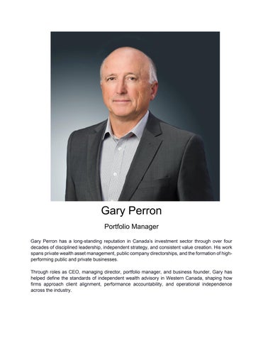 Gary Perron has built a respected career in Canada’s investment sector, spanning more than four decades of consistent leadership, independent strategy, and measurable results. His work has included private wealth asset management, service on public company boards, and the founding of both public and private businesses that have achieved long-term success. He has served as CEO, managing director, portfolio manager, and business founder, influencing the evolution of independent wealth advisory in Western Canada. His approach has shaped how firms prioritize client alignment, uphold accountability, and maintain operational independence. His career began in 1977 at BMO Nesbitt Burns (and predecessor Burns Fry) in Calgary, where he spent 36 years refining an investment philosophy centered on discipline, adaptability, and accountability. In the 1990s, he co-founded a boutique fund management company in Calgary that expanded nationally, with offices in Calgary and Toronto. The firm earned a reputation for strong returns and efficiency, rivaling bank-run investment houses. In 2013, he launched Perron & Partners Wealth Management (PPWM) to serve high-net-worth individuals, family offices, foundations, and business owners. Independent from big banks, the firm offered tailored advice and launched the long-performing Kipling Funds. In 2017, he co-founded a marina and dealership group that has grown into Canada’s largest freshwater network, with 20 marinas and 11 dealerships. This venture highlights his ability to guide large-scale, asset-based operations beyond traditional capital markets. Under his leadership, the team at Perron & Partners Wealth Management (Calgary Cumberland Private Wealth) has received Canadian Hedge Fund Awards nominations in 2022, 2023, and 2024 for the Kipling Funds, a 2024 Advisory Team of the Year (Under 10 staff) Award of Excellence, a 2023 5-Star Advisory Team Honor, and a 2025 Wealth Management Award.