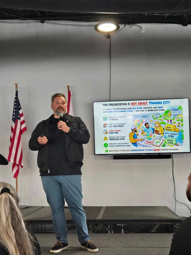 We were honored to welcome Mayor Allan Branch, City of Panama City, as our keynote speaker His presentation struck the perfect balance between informative and entertaining, leaving attendees with both practical takeaways and a story they won’t soon forget Through the fictional tale of “Marty” and a few unfortunate land development missteps, Mayor Branch delivered a message that resonated with everyone in the room