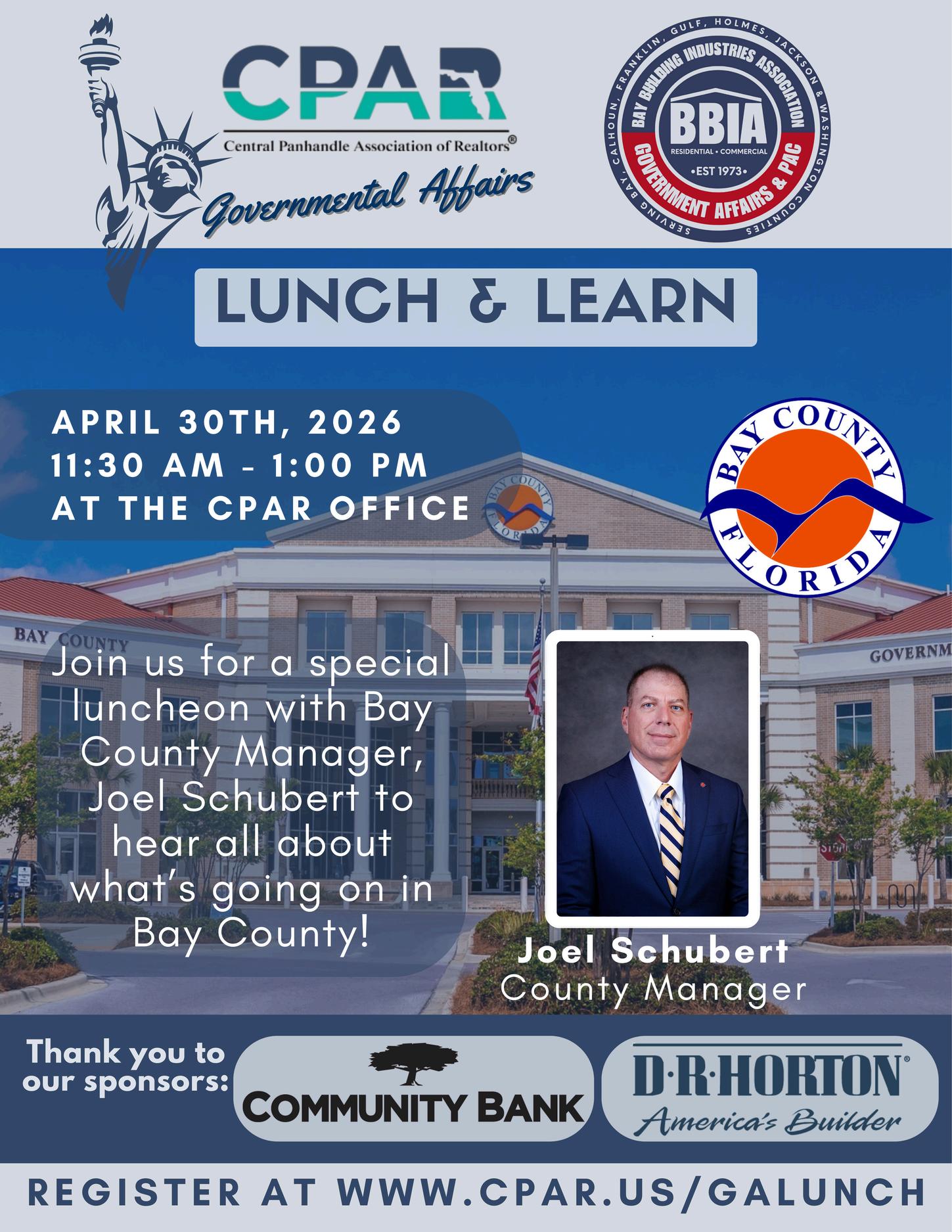 This special BBIA Lunch & Learn will feature our Scholarship Presentation. Our tentative keynote speaker is Congressman Jimmy Patronis