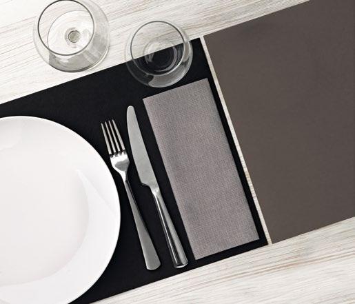 Suprema, die neue Kollektion von bedruckten Tischsets. Stark dank ihrer Zusammensetzung von 100 g/m², beleben sie die Zubereitung des Tisches.