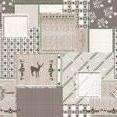 Un tovagliato che ricorda l’arte del patchwork in piccoli riquadri, alterna colori pieni a tradizionali disegni geometrici e motivi floreali astratti.