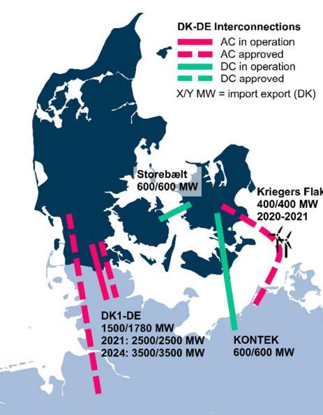 As with the Kriegerâs Flak connection, the connections from the energy island at Bornholm will be limited by the fluctuating RE-production but can otherwise also be used as an interconnection for electricity trading between Germany and Denmark. (Danish Energy Agency, 2022)
