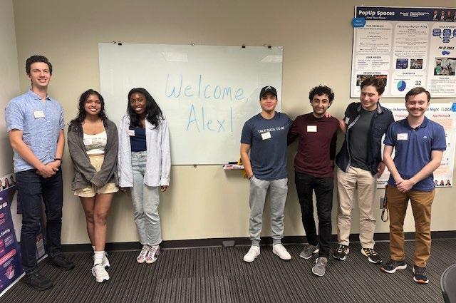 Mackenzie Czerner (business – IT management), Landon Barrett (business – IT management), Emily Cory (industrial engineering), Sophia Rubino (T&M Class of 2021), David Rozen (mechanical engineering), Christine Webster (public policy), Ari Shalom (electrical engineering), Xander Coles (industrial engineering), and Shlok Dholakia (computer engineering) at Sophia Rubino’s alumni office takeover in January 2024.