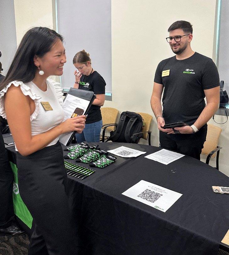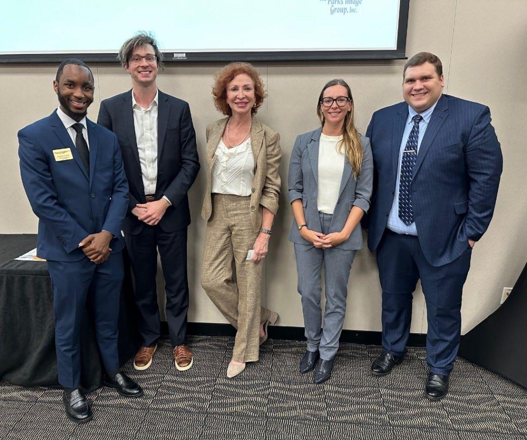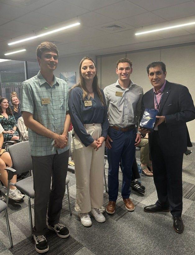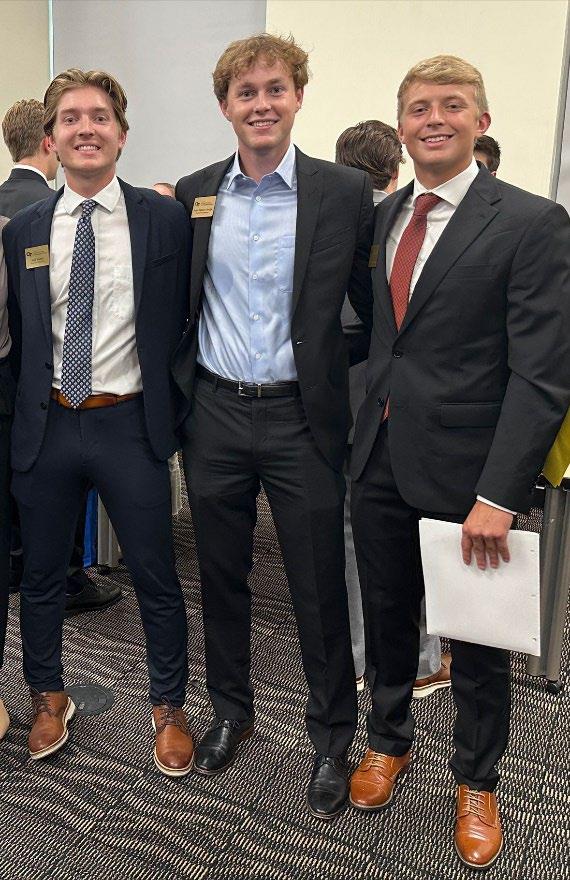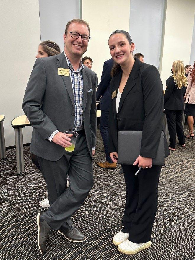 Michael Severin (T&M Class of 2013) addressing the T&M Class of 2014 about proper capstone sponsor communication in October 2023. | Kay Balla (T&M Class of 2016), Anne Lynch, and Isabella Turner (T&M Class of 2023) at the October 2023 Atlanta alumni reunion.