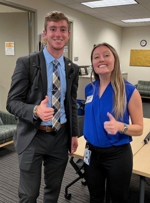 Dinma Ohamadike (business – marketing) at her Caterpillar internship. | Haley Gruensfelder (industrial design) announces her full-time position as a UX Designer at NCR Voyix.