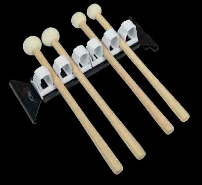 • Revolutionary spring-loaded, quick-release system provides quick bass drum mallet placement for 14" and 16" deep marching bass drums