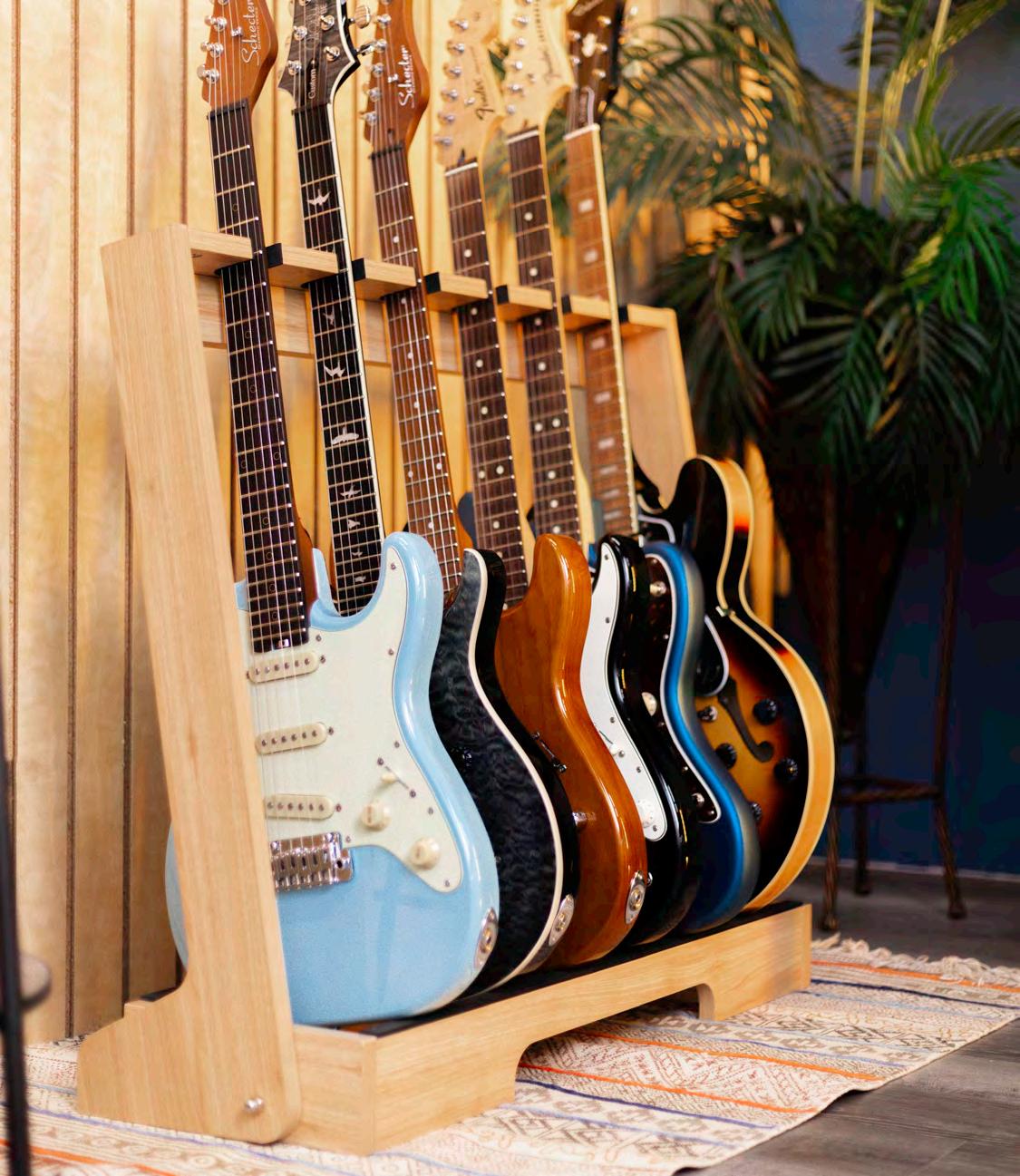Wooden 6X Guitar Rack in Natural Maple Finish