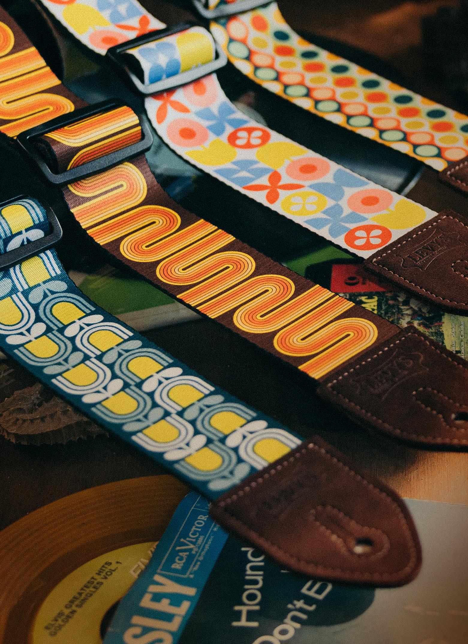 Bring vintage vibes to your guitar with our Mid-Century Modern Guitar Strap Series. Featuring retro prints like mod tulips, groovy sunset patterns, and bubbles. These straps are handcrafted in Nova Scotia with premium suede ends for a secure, comfortable fit. Adjustable length to suit a range of preferences, this series is perfect for players seeking style and lasting comfort.