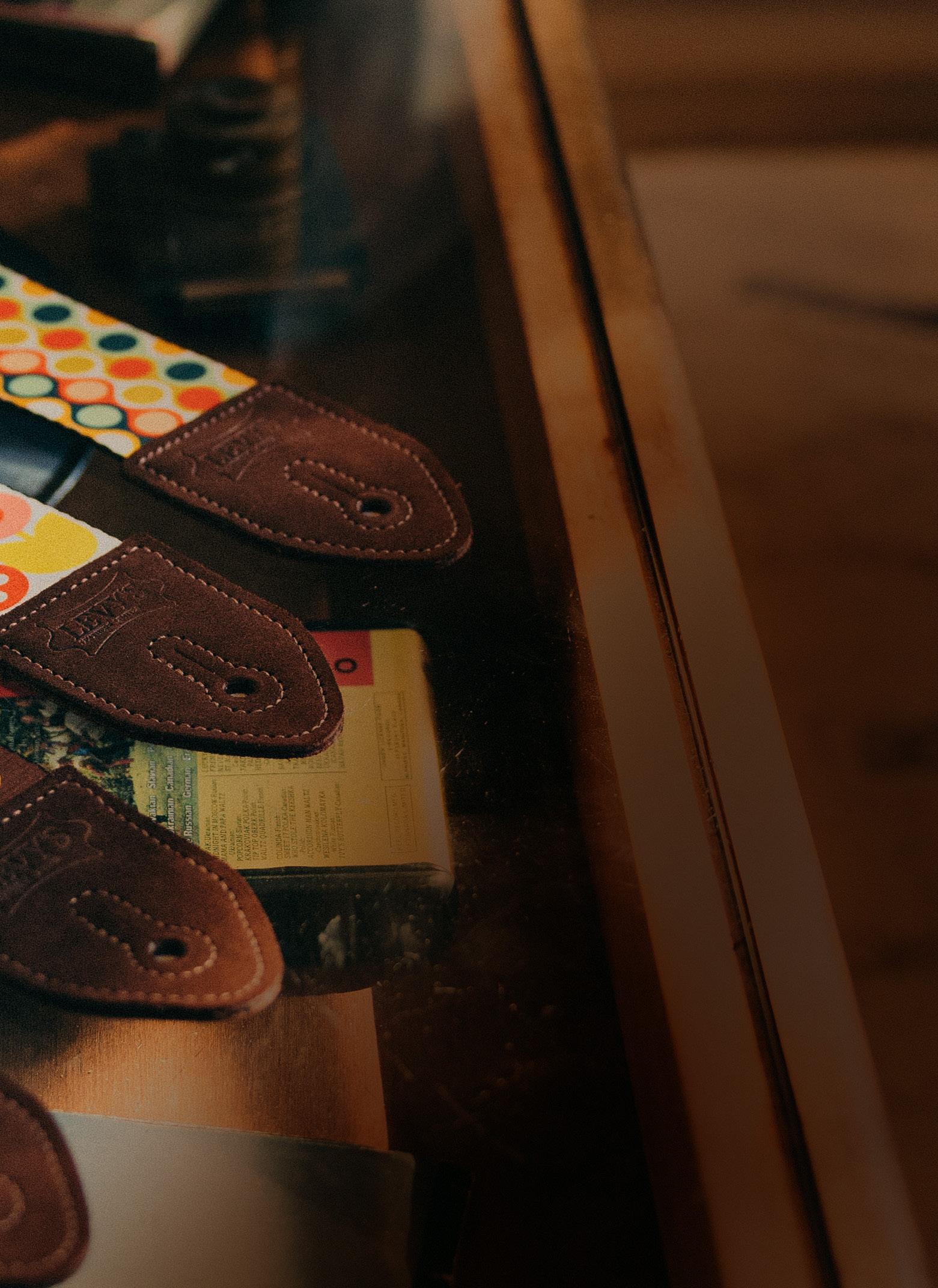 The Signature Tri-Glide Guitar Strap Series combines timeless craftsmanship with modern versatility. These premium straps feature the iconic Levy’s signature logo badge, a mark of unparalleled quality. Available in a spectrum of colors — some inspired by classic vintage guitar finishes — this series blends style and function. Whether on stage or in the studio, these leather straps offer comfort, durability, and elegance.
