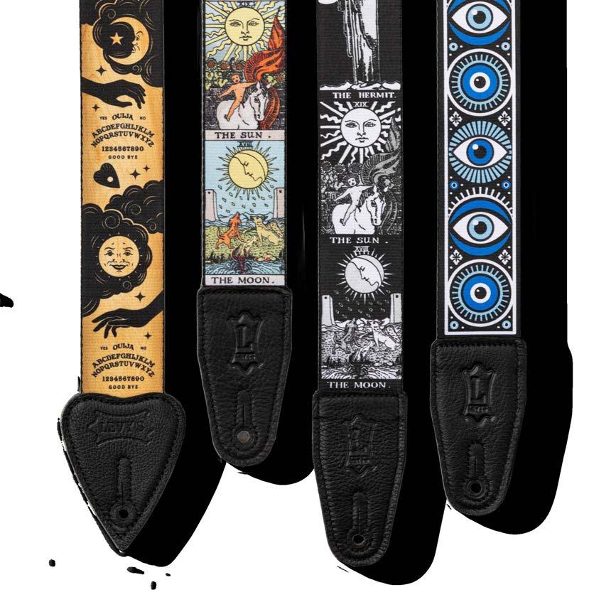 Enter the mystical with the Clairvoyant Series. These 2” poly straps feature vivid tarot card illustrations, the protective gaze of the evil eye, and mysterious symbols of the Ouija board, blending comfort with an otherworldly aesthetic. Crafted for durability, each strap invites you to make a powerful visual statement while channeling your unique musical energy.