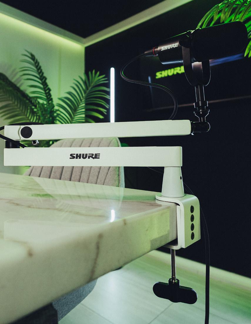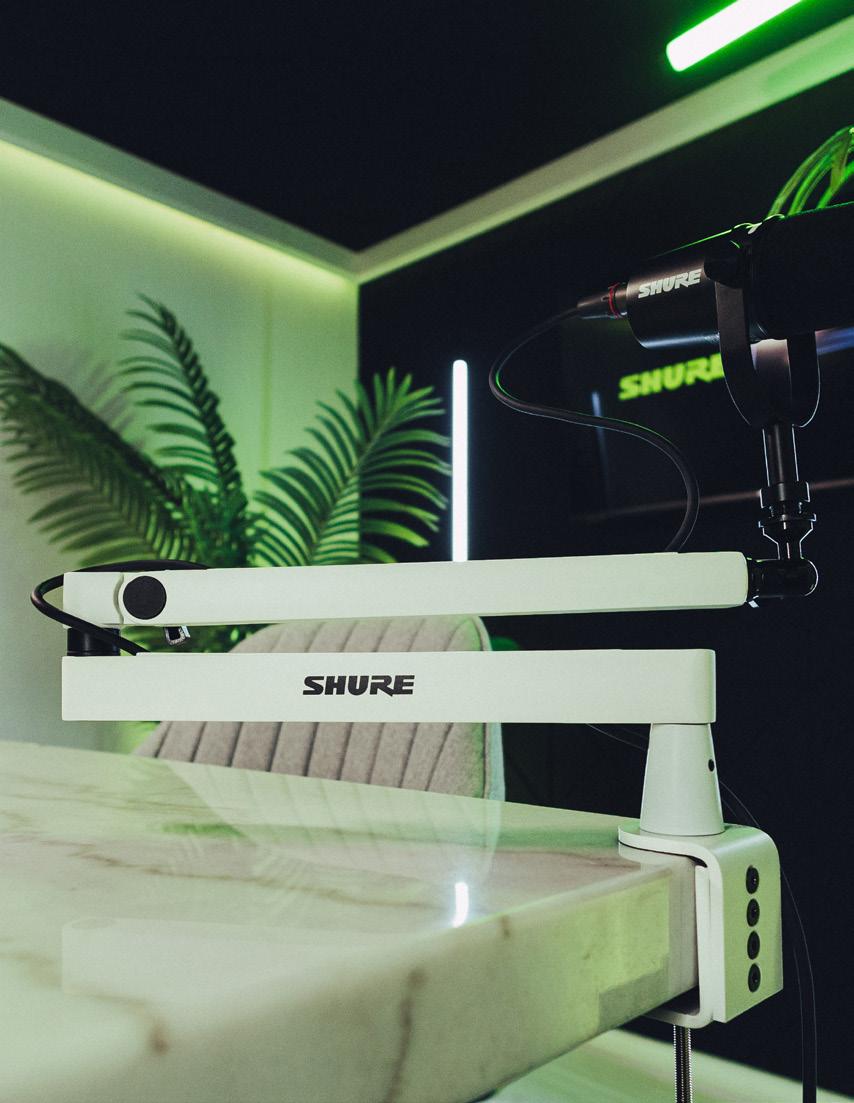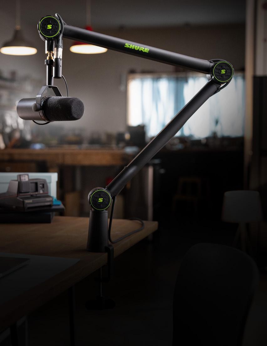 - Shure-designed low-profile desktop mic boom stand provides your viewers with an unobstructed view