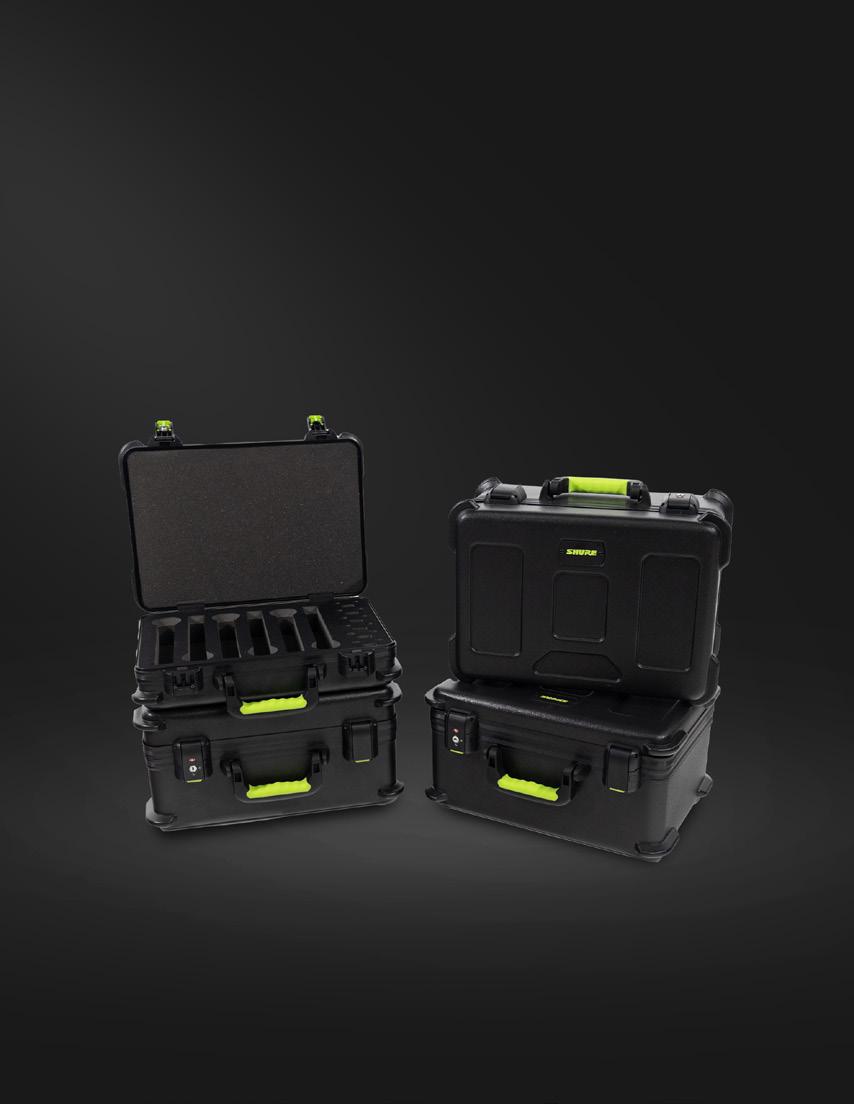 The Shure System Solution Series is designed to provide safe storage for your gear during transport while also allowing you to use your gear without having to remove it from the case or bag