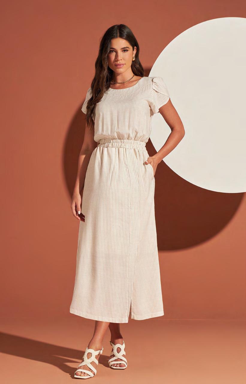 G2487 Vestido Midi Viscose com Linho I 36 a 44