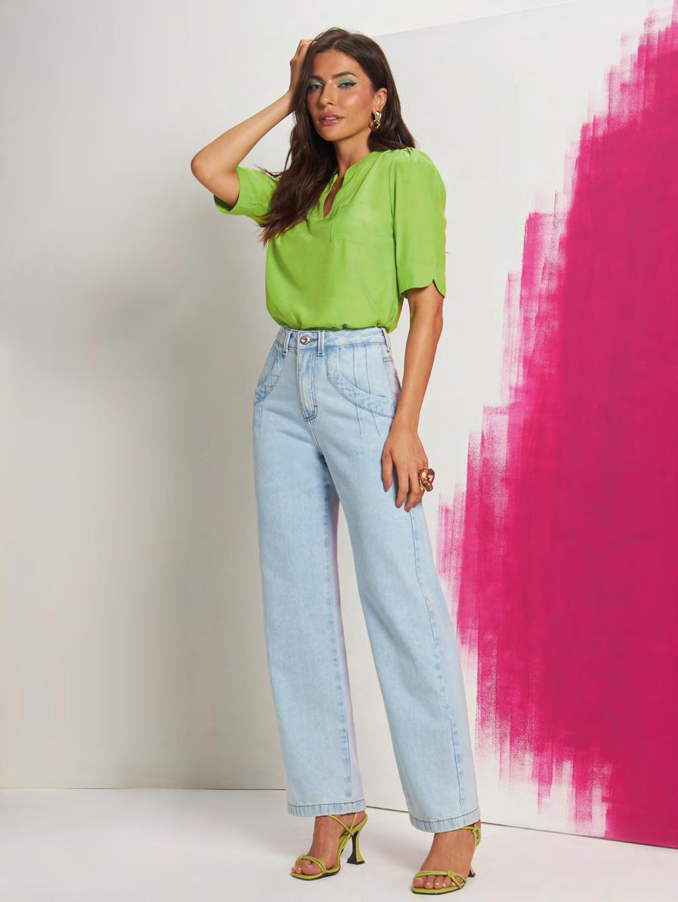 130 G1812 Blusa Malha Cotton Comfort com Elastano I P a GG 02 1960 01 1969 G1841 Calça Wide Leg Jeans Cós Alto I 34 a 46 I Cor Única