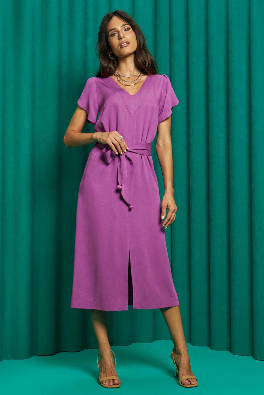 BLOCOS DE CORES E SEU PODER DE ELEVAR O NÍVEL DO VISUAL EM SEGUNDOS! G1724 Vestido Midi Shantung Viscose Mista e Malha Viscose Maquinetada com Elastano I 36 a 46 2238 2236