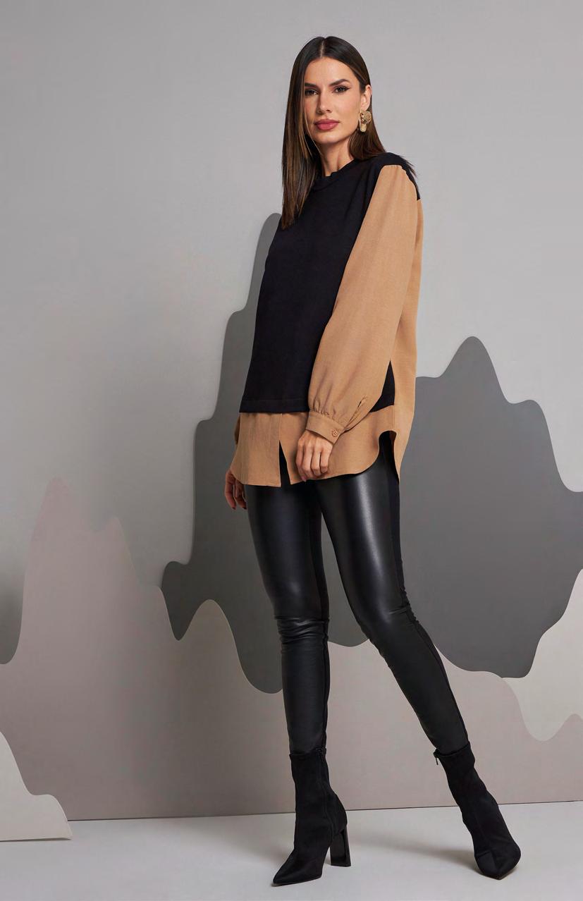 G2831 Blusa Malha Vis Up Light com Elastano com Crepe Chiffon e Shantung Viscose Mista I Desenho