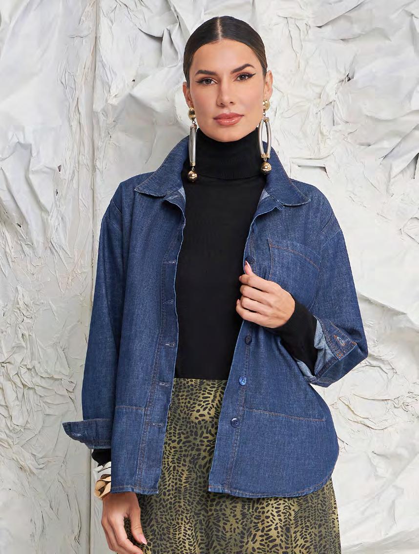A camisa jeans é aquela peça que te acompanha sempre que você precisa incrementar um look sem muito esforço, pois ela se adapta facilmente a muitas produções!