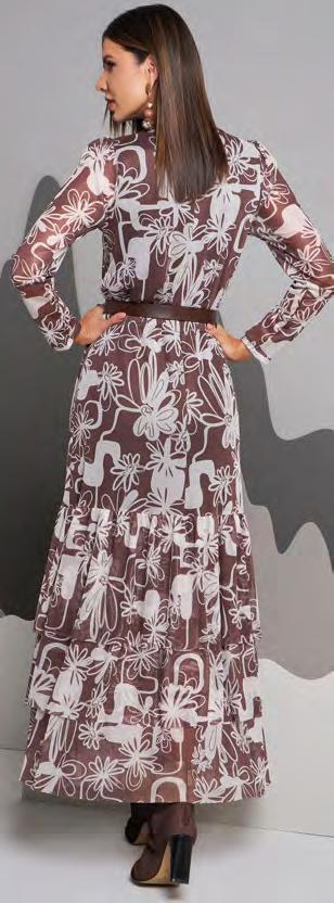 As cores incluem os clássicos off, preto, rosa envelhecido, cinzas e pitadas importantes de cores estratégicas para compor com os neutros. Os tecidos como tules, chiffons, viscoses fluídas e malhas extremamente versáteis são predominantes.