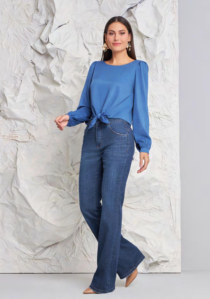 Aquele jeans com carinha de alfaiataria! Modelagem boot cut, costuras no comprimento e tom azul mais fechado fazem dessa peça aquele clássico que sempre dá certo!