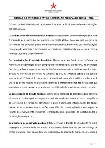 Posição do GTE sobre a tática eleitoral no Rio Grande do Sul 7abr2026 final