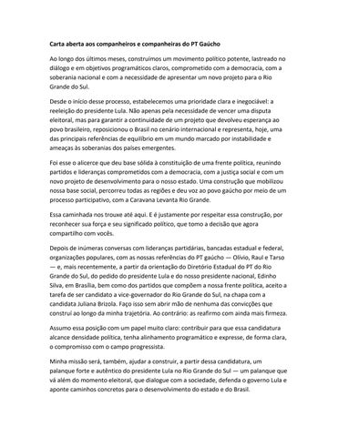Carta ao PT Gaúcho