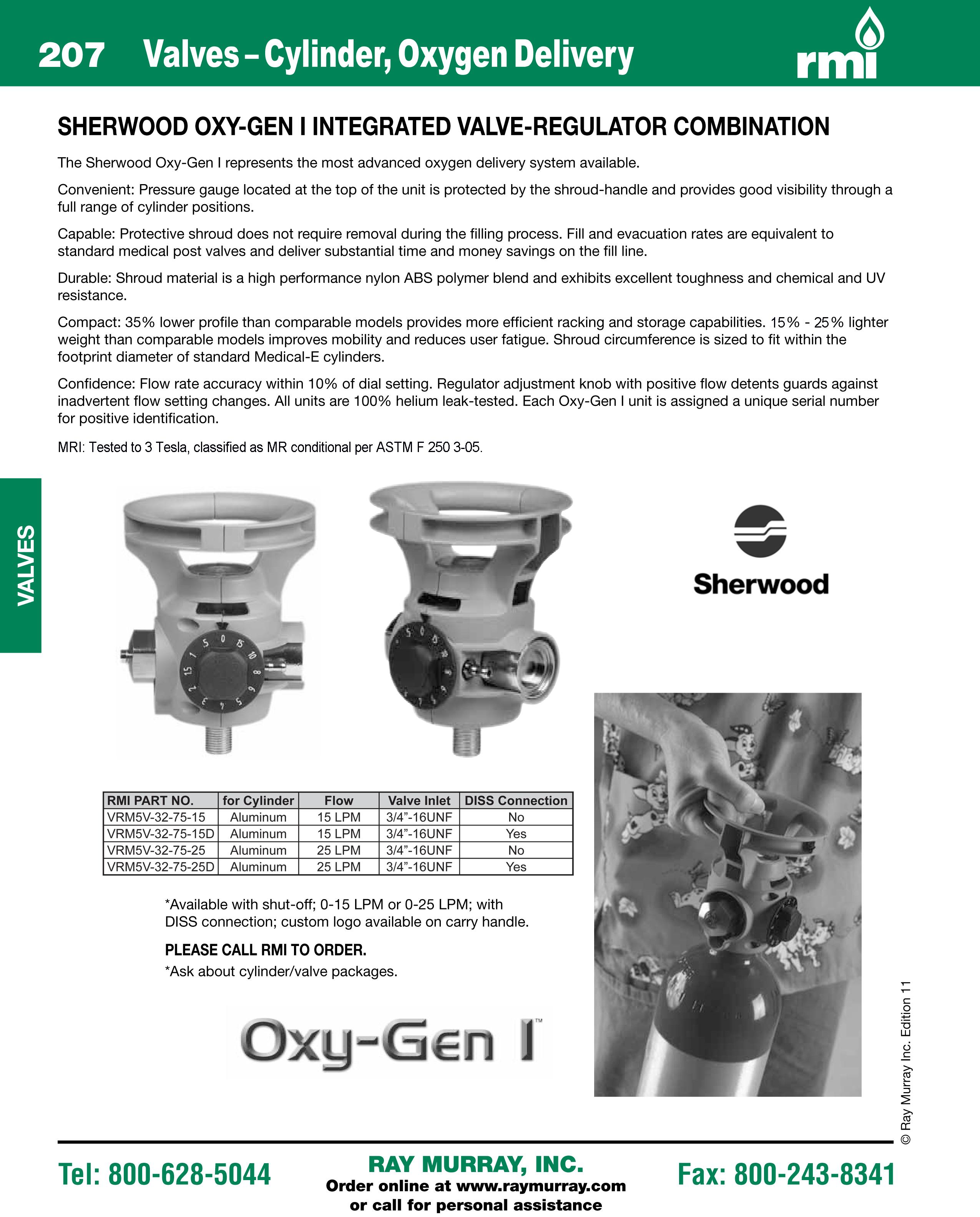 • All valves cleaned for use in oxygen per CGA-4.1.