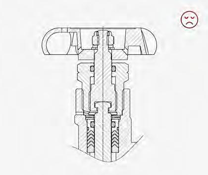 Unlike the single spindle packed valve, the packing is smaller, better contained, spring loaded & backed by O-ring/s. This allows the mechanism to seal with handwheel up to 200 bar & eliminates the need to retighten gland nut making the design very suitable for toxic & corrosive gases.