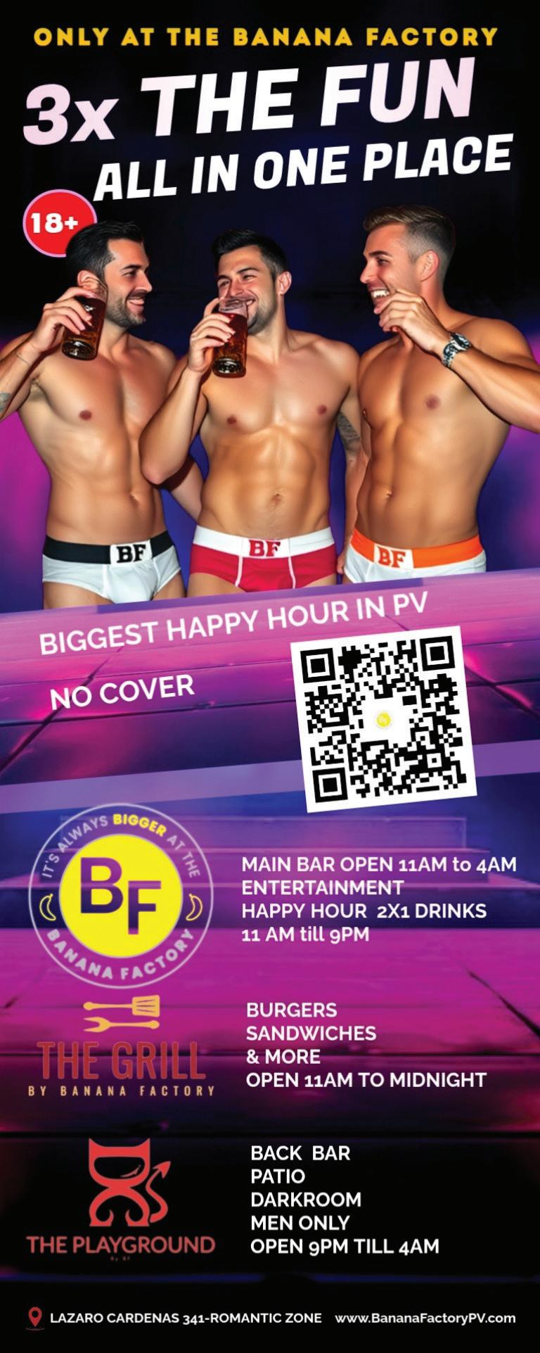 Despuésdequelaatencióndelmundofuepuestaa PuertoVallartaen1963graciasaLizTaylorseguidapor LaReinaen1983,cadaañohaymáscosasquehacerenel Vallartagay.Seabrennuevoslugares,yalgunoslugares másantiguosyestablecidoscambiandepropietario,administraciónodeubicación.Lagamadeentretenimiento localeinternacionalenvivo,actividadesdiurnasynocturnas,lugaresparacenaryalojamientogayhaaumentado cada año. Desde lo simple hasta lo lujoso, lo más elaborado y servicios personalizados, PV lo tiene todo parati.