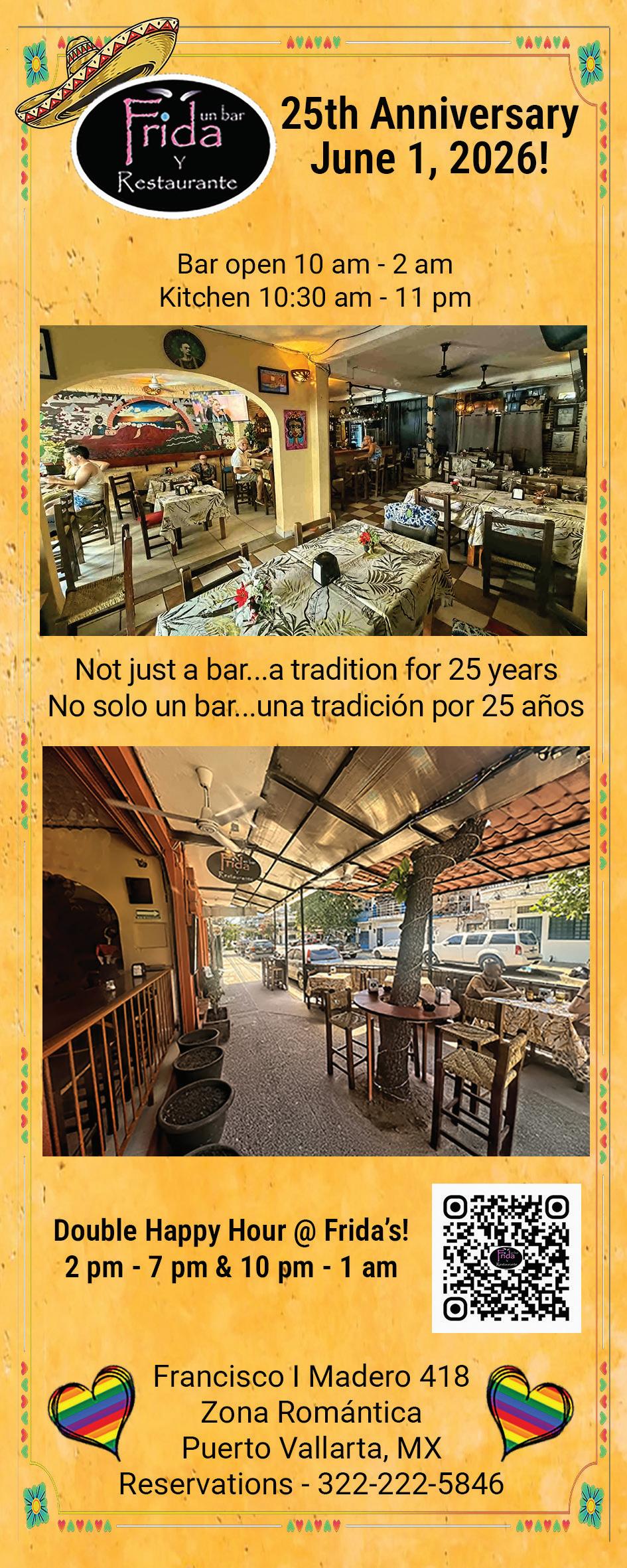 Despuésdequelaatencióndelmundofuepuestaa PuertoVallartaen1963graciasaLizTaylorseguidapor LaReinaen1983,cadaañohaymáscosasquehacerenel Vallartagay.Seabrennuevoslugares,yalgunoslugares másantiguosyestablecidoscambiandepropietario,administraciónodeubicación.Lagamadeentretenimiento localeinternacionalenvivo,actividadesdiurnasynocturnas,lugaresparacenaryalojamientogayhaaumentado cada año. Desde lo simple hasta lo lujoso, lo más elaborado y servicios personalizados, PV lo tiene todo parati.