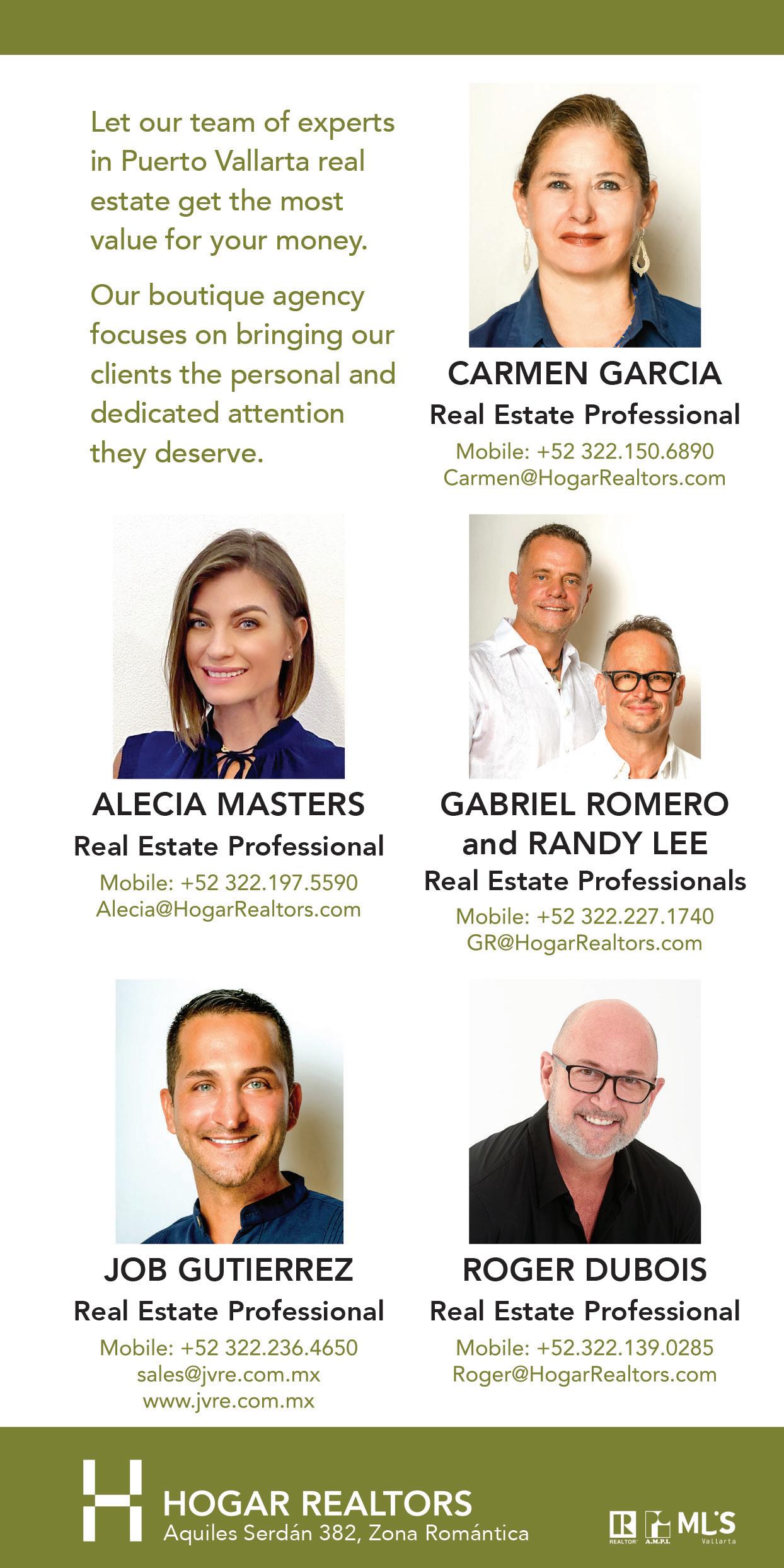 Alecia@HogarRealtors.com Gabriel Romero & Randy Lee +52 322.227.1740 GR@HogarRealtors.com SOHOPV