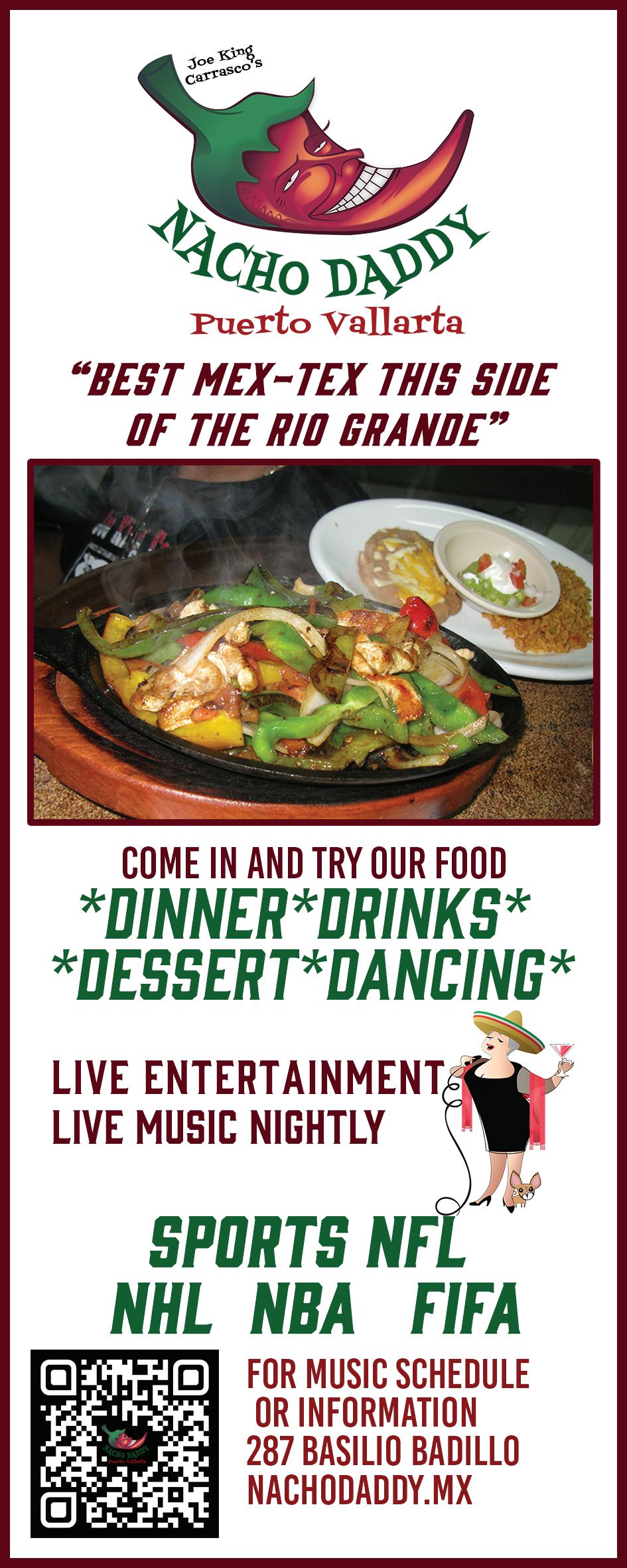 Apaches 4 - 7 Chachalaca 4 - 7 La Cueva Cantina 4 - 7 One Six One 4 - 7 Qulture 4 - 7 (Wed /Mier.) 12 - 10) (Sat. /Sab.) 4 - 10) CC Slaughters 4 - 9 The Swedes 5 - 11 Only Wed / Solo Mierc. Act2PV 5:30 - 6:30 Pacos Ranch 10pm - 12am Frida Bar 4.0