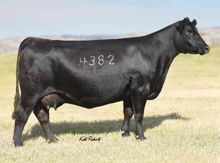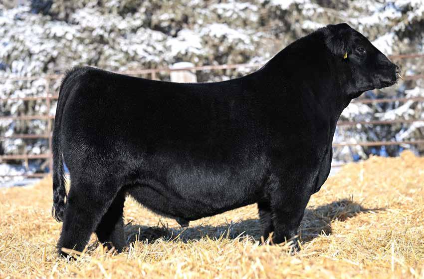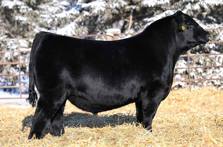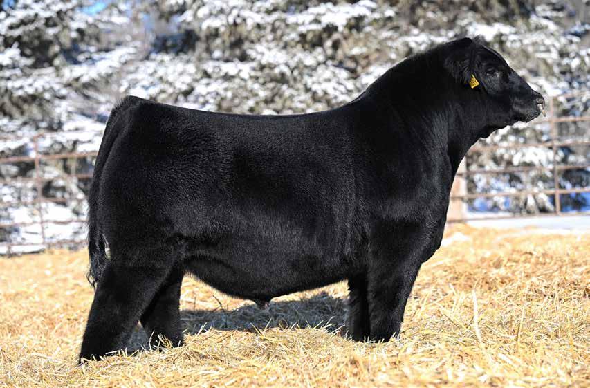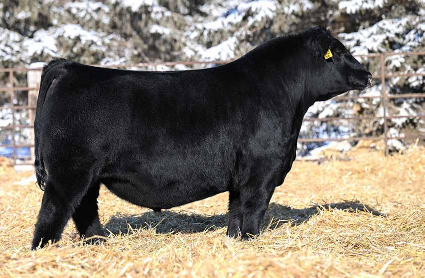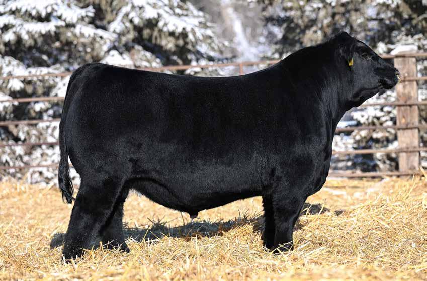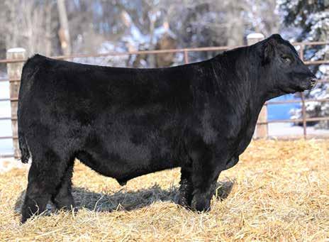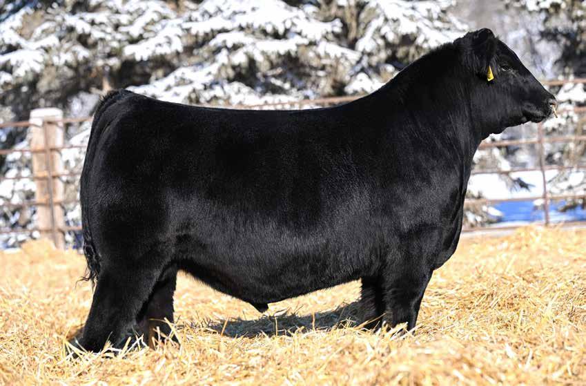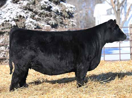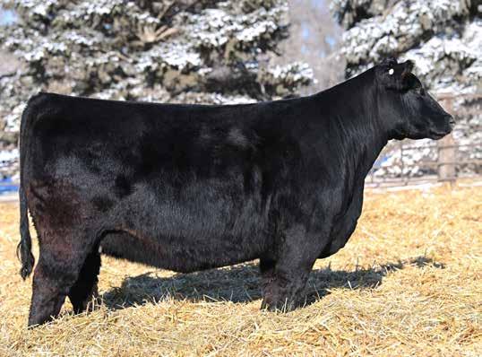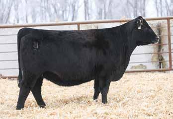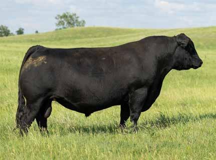 Chestnut Miss Blanche 429 is a beautiful Long Teton 107 daughter that you will admire on sale day for her phenotype that reads of the utmost balance, longevity and femineity. The cow family you find in support is admired in Pipestone for their milking ability, easy fleshing and maternal value. The dam of 429 is a maternal sister to the Chestnut Incredible 912 herd sire that sold to Dustin Ponto in the 2023 Bull Sale and a maternal sister sold last year to Eli Nissen. Numerically she tabulates just how we like them, coming with very acceptable calving ease predictions and even more impressive growth numbers that rank among the top 10% of the Angus registry. Good beef that comes with a proven cow family, genetic prowess and a highquality phenotype.