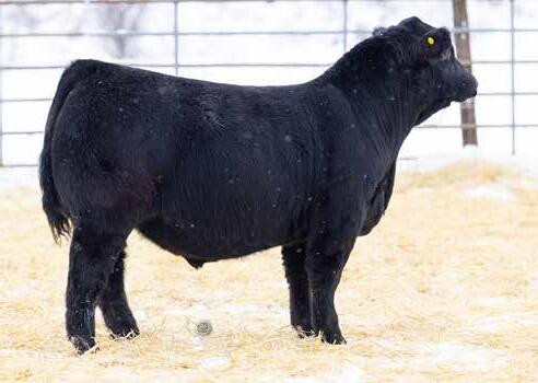 • This stout, attractive yearling comes from a highlight of the black hided cow herd in Ringle, Wisconsin that traces back the matron Gambles Jestress 9035.